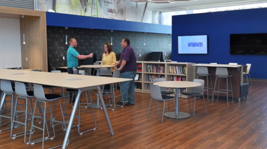 With no private offices but tons of space for “casual collisions” and collaboration, Interstates is finding big benefits to its new building.